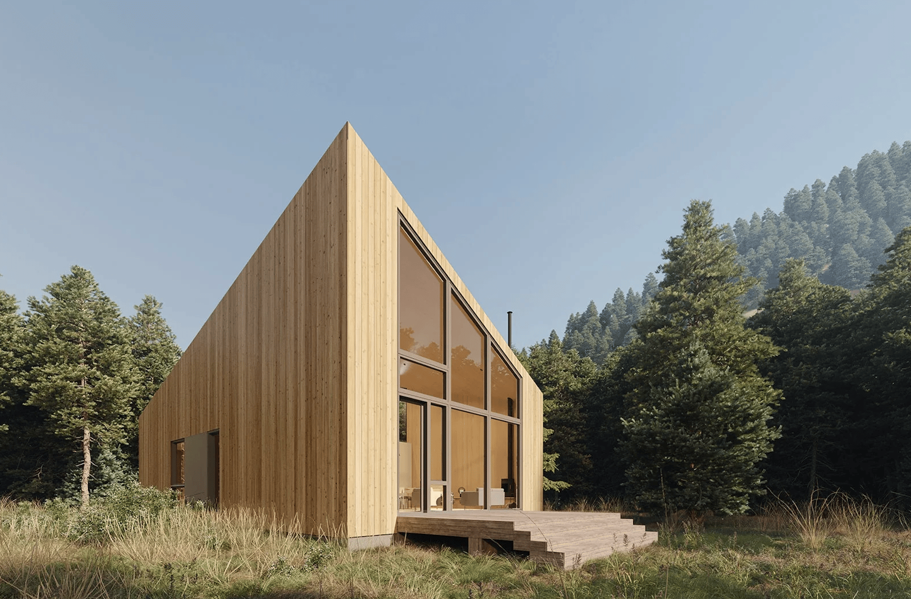 The Deephaven Den was designed in a Scandinavian modern style. This home features a striking roofline, 25-foot ceilings, and an expansive wall of windows that seamlessly connect indoor comfort with the outdoors. Located in Deephaven, MN, just blocks from Lake Minnetonka, the Deephaven Den combines modern design with the natural beauty of its surroundings.
